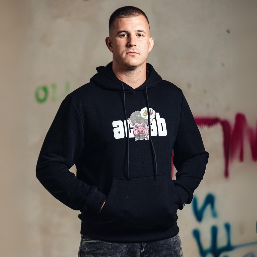 Суитшъртът "АКАБ" е перфектен за тези, които искат да покажат своята позиция срещу институционалната власт. Дизайнът включва прасе с полицейска шапка и емблематичното съкращение "ACAB". Тази дреха е за бунтарите, за онези, които искат да изразят своето несъгласие и да направят смела политическа заявка. С комфортния си материал и силното послание, този суитшърт е задължителен за всеки, който се бори за свобода и правосъдие.